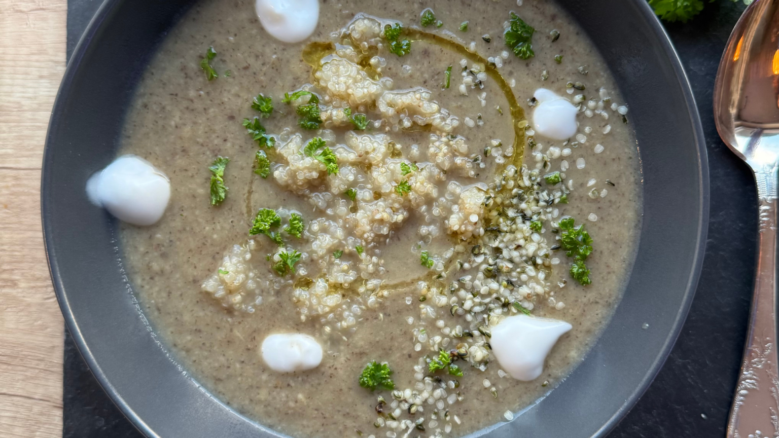 Supă cremă de legume și ciuperci cu quinoa