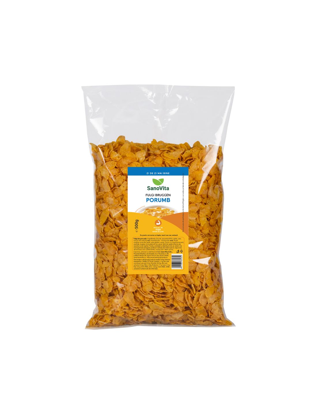 Griș de porumb (93%) (Origine UE), zahăr, sare, malț de orz, emulsificator - lecitină din soia.