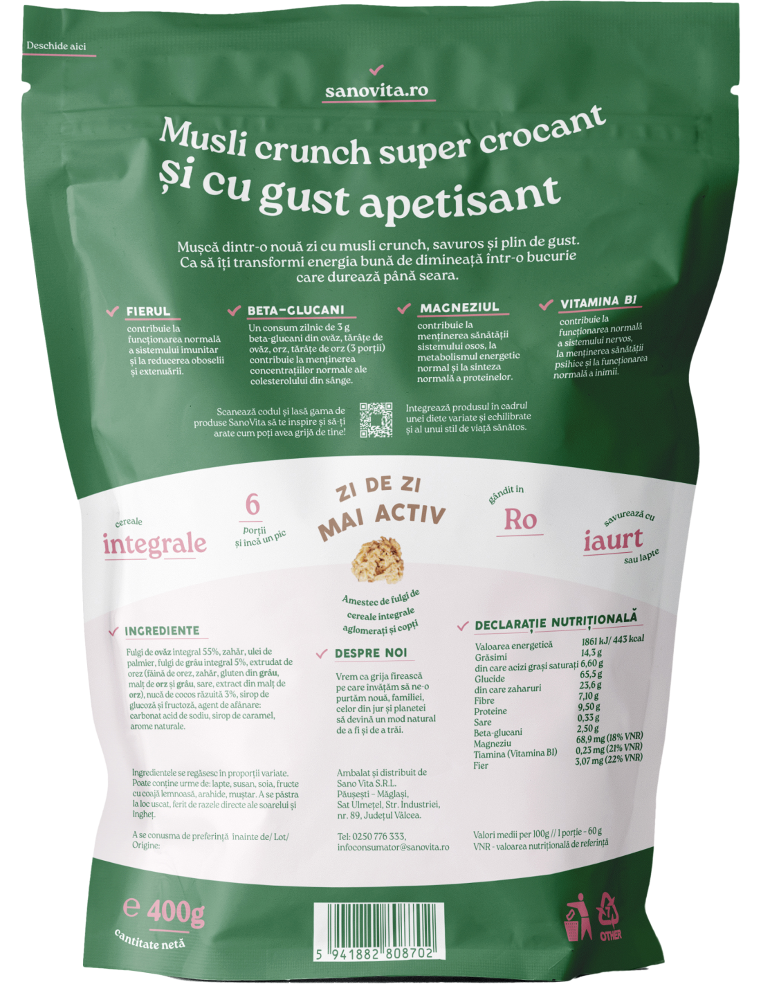 Mușcă dintr-o nouă zi cu musli crunch, savuros și plin de gust. Ca să îți transformi energia bună de dimineață într-o bucurie care durează până seara.