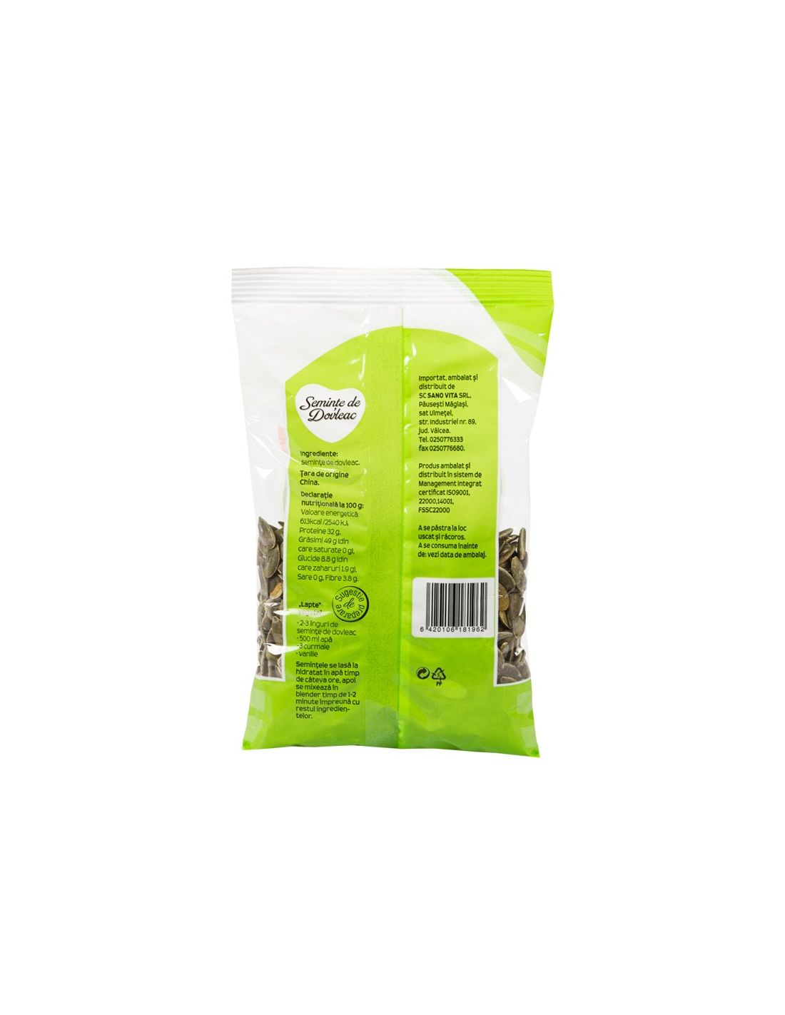 De exemplu, semințele de dovleac pe care le comercializează SanoVita sunt crude și nu provin din culturi modificate genetic, iar ele ajung la consumatori în pungi vidate, tocmai pentru a împiedica alterarea lor.
